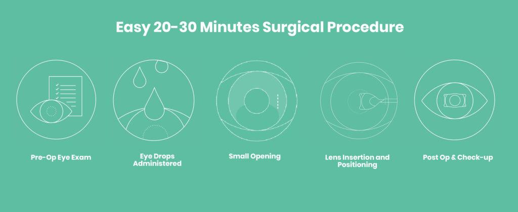 Phakic IOL refers to the fact that the lens is implanted into the eye without removing the eye’s natural lens.