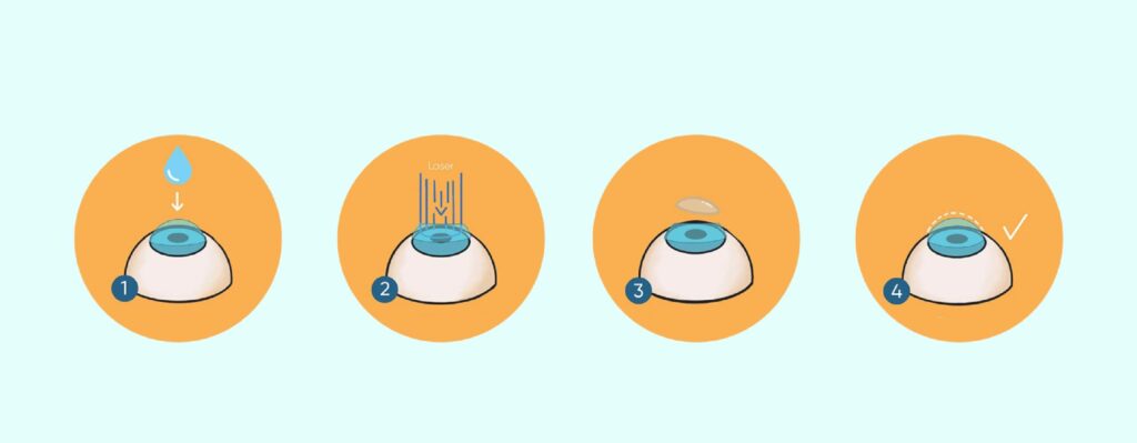After this procedure patient feels mild discomfort for 3 to 4 days as compare to LASIK surgery. The bandage contact lens is removed after 3-4 days and thus the rest period is more is compare to LASIK. This procedure is extremely safe and reliable for low to moderate refractive errors. In high refractive errors there are chances of mild to moderate corneal haze.